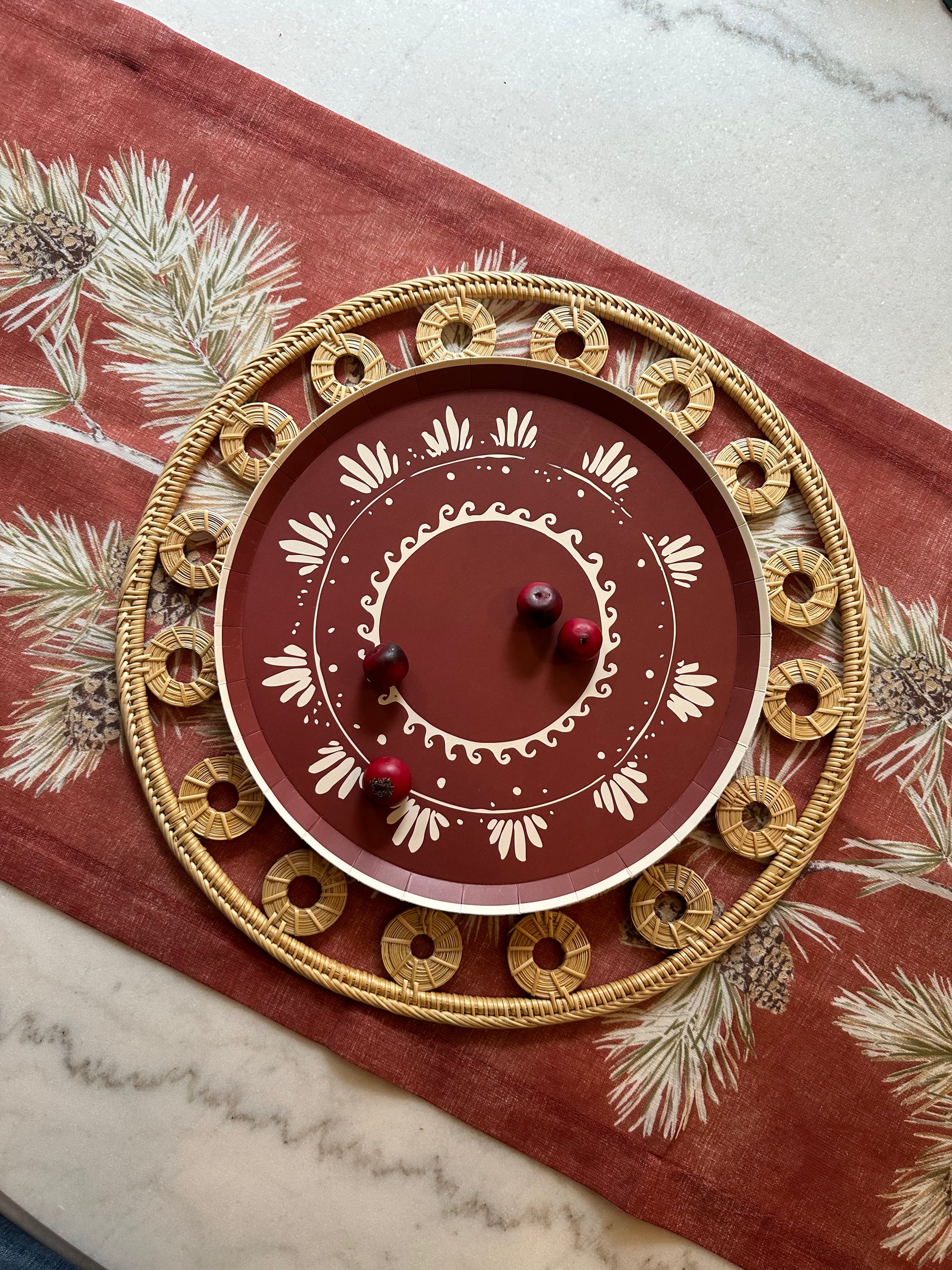 Inspired by vintage ski lodges and candlelit après dinners, the Chalet Dinner Plate Set brings warmth to every winter table. Featuring a deep red background with a hand-painted, scalloped motif, these plates are perfect for any holiday occasion from fireside gatherings to festive dinners.