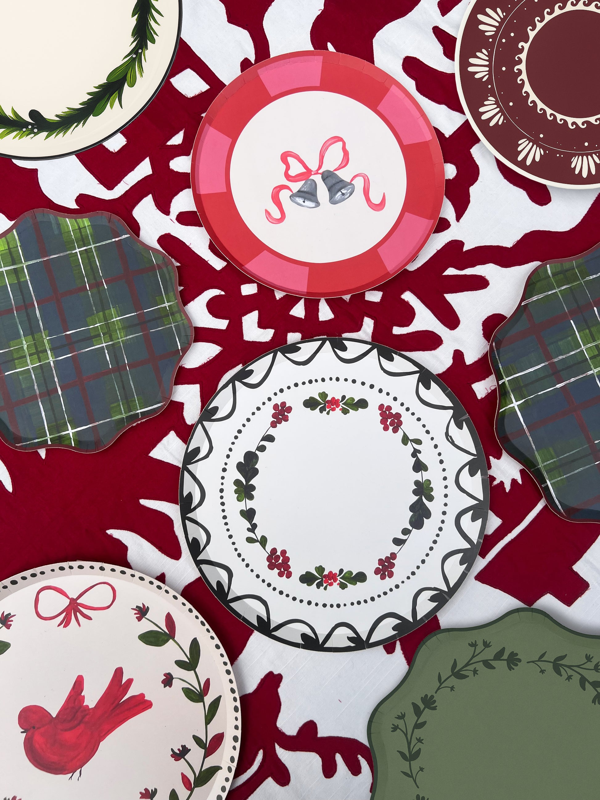 A festive play on our bestselling Cabana Plate. Add a fun pop of color to your holiday tablescape with the Silver Bells Appetizer Plate. Perfect for light bites, desserts, or layered on a dinner plate for a fully styled tabletop.